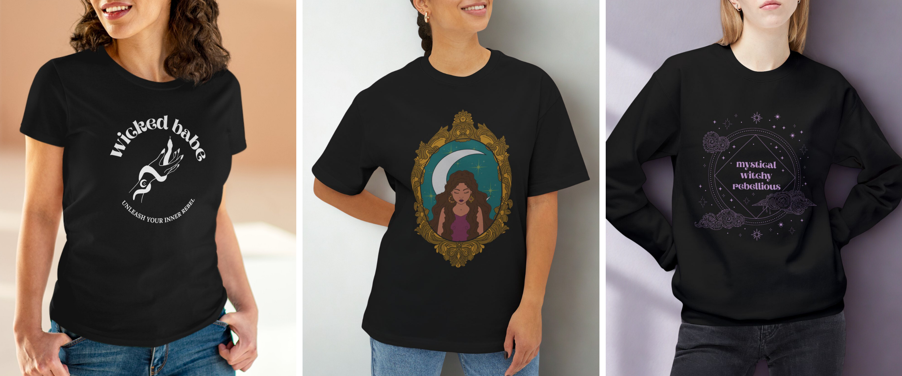 Each piece you see above, from celestial tees and cosmic journals to witchy accessories, was created to inspire intention, creativity, and everyday magic. These mystical essentials are designed with original artwork and meaningful detail, bringing celestial style to every part of your day.