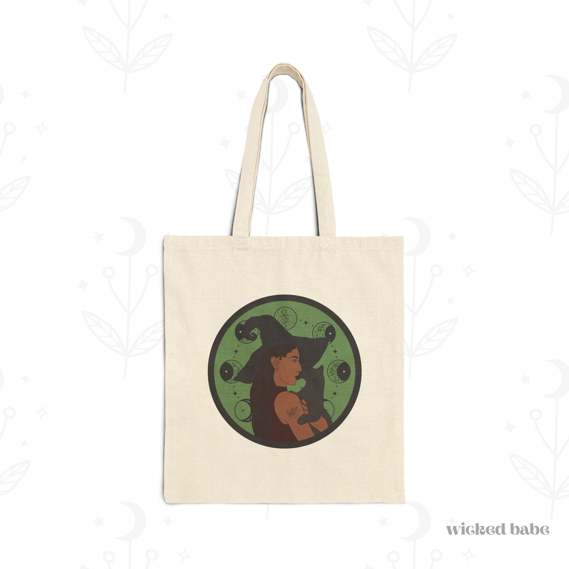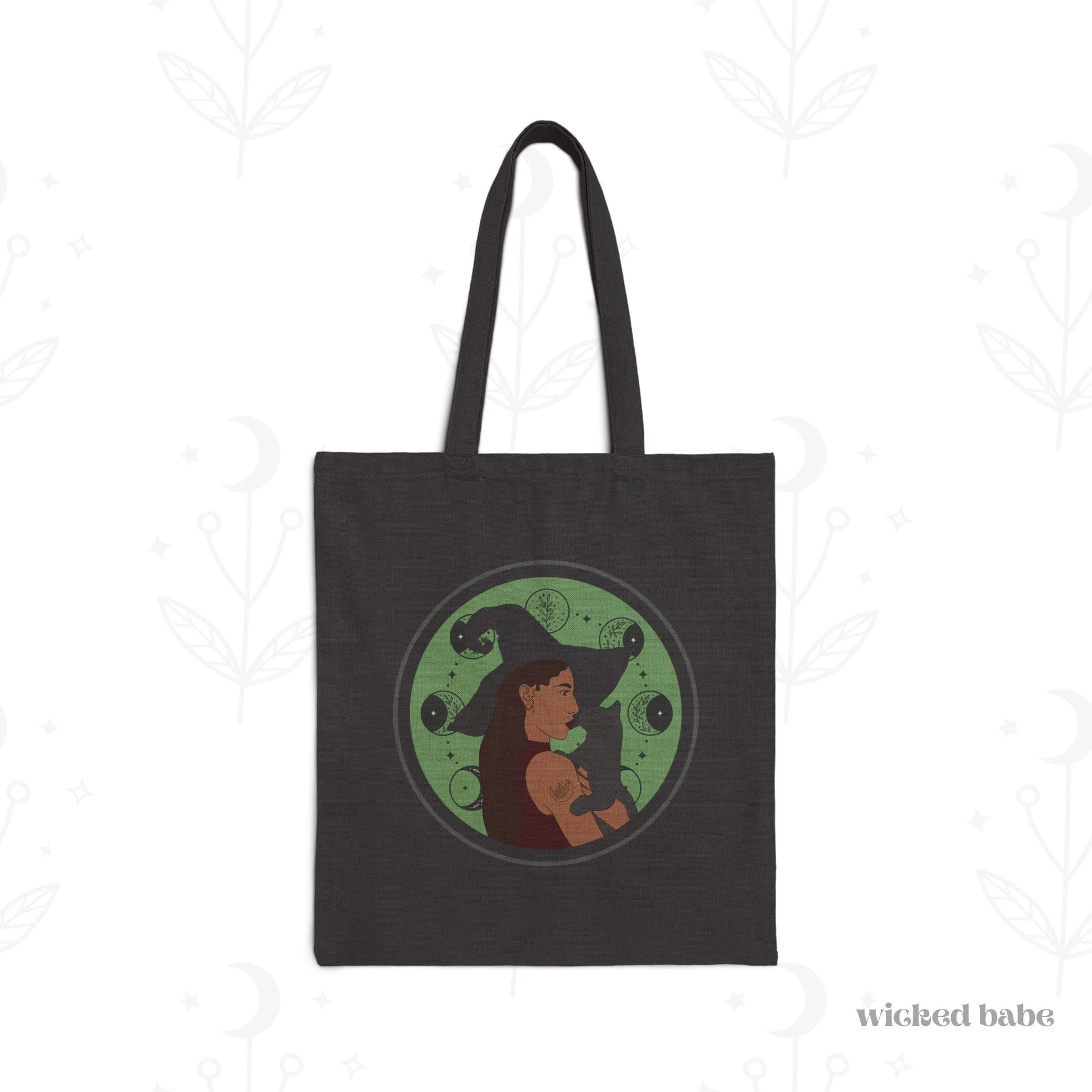 Witchy Woman Tote Bag - Celestial Witch and Black Cat Canvas Tote